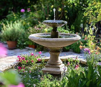 Un bassin ou une fontaine devient le cœur vivant du jardin, attirant oiseaux, libellules et papillons curieux.