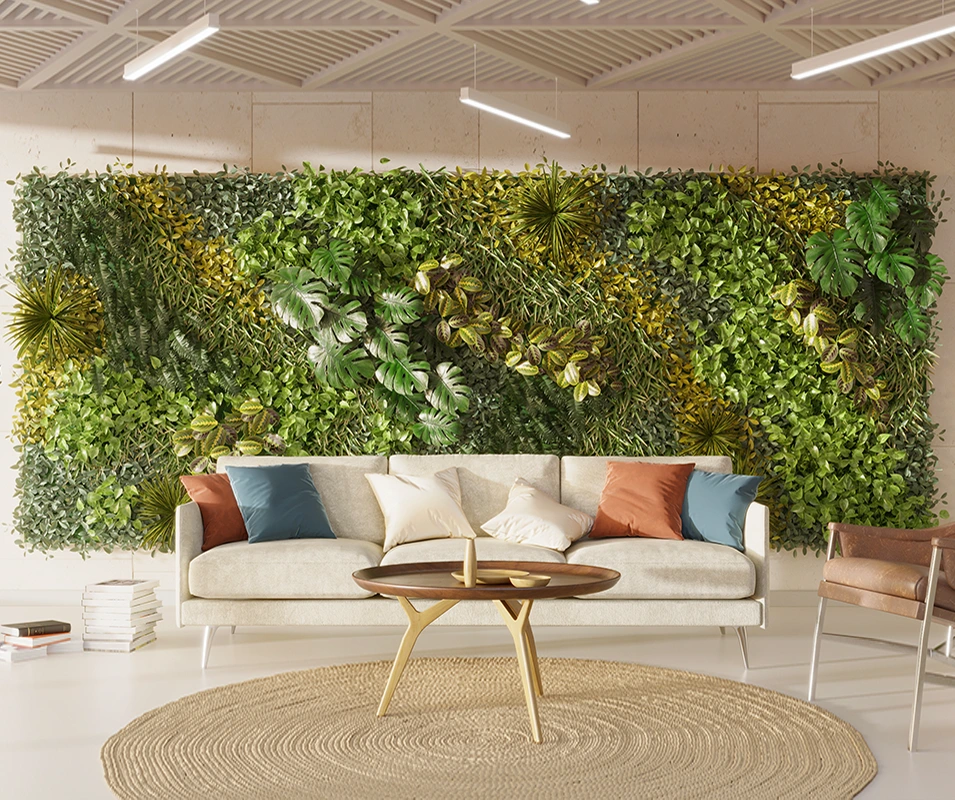 Le mur végétal transforme un simple mur en jardin suspendu, offrant une solution élégante pour maximiser l’espace intérieur ou extérieur. Parfait pour les balcons ou les petits patios, il associe esthétisme et fonctionnalité. Installé sur une structure dotée de poches ou de modules légers, il bénéficie d’un système d’irrigation goutte-à-goutte garantissant un arrosage régulier et équilibré, essentiel à la vitalité des plantes.