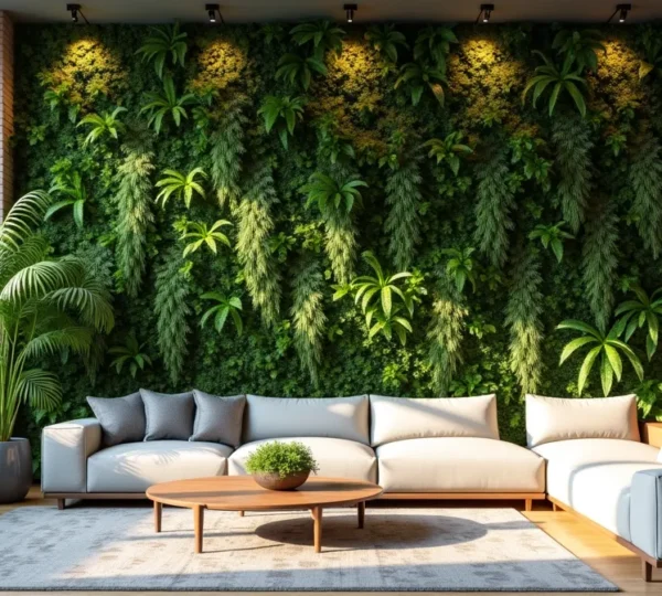 Lorsque la surface au sol se fait rare, pensez vertical. Les murs végétaux intérieurs et les solutions d’optimisation spatiale permettent de maximiser votre collection végétale même dans un studio compact.