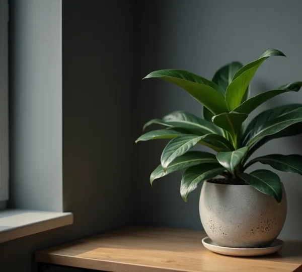 Pour les coins sombres – couloirs, salles de bain sans fenêtre ou bureaux peu éclairés – privilégiez pothos, zamioculcas, sansevieria ou aglaonema. Ces champions de l’ombre convertissent efficacement le moindre rayon lumineux grâce à leur feuillage dense et foncé.