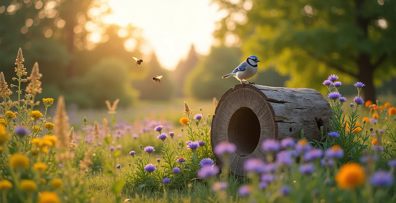 Ce guide vous propose de chausser les bottes d’un biologiste de terrain pour décoder le langage de la nature locale. Nous allons déconstruire les mythes courants et explorer des stratégies plus profondes, plus efficaces et souvent plus simples pour faire de votre cour non pas une simple halte, mais une véritable résidence cinq étoiles pour les pollinisateurs et les oiseaux. En comprenant leurs cycles de vie complets, de l’abri hivernal à la source d’eau sécuritaire, vous deviendrez un maillon essentiel de la biodiversité québécoise.